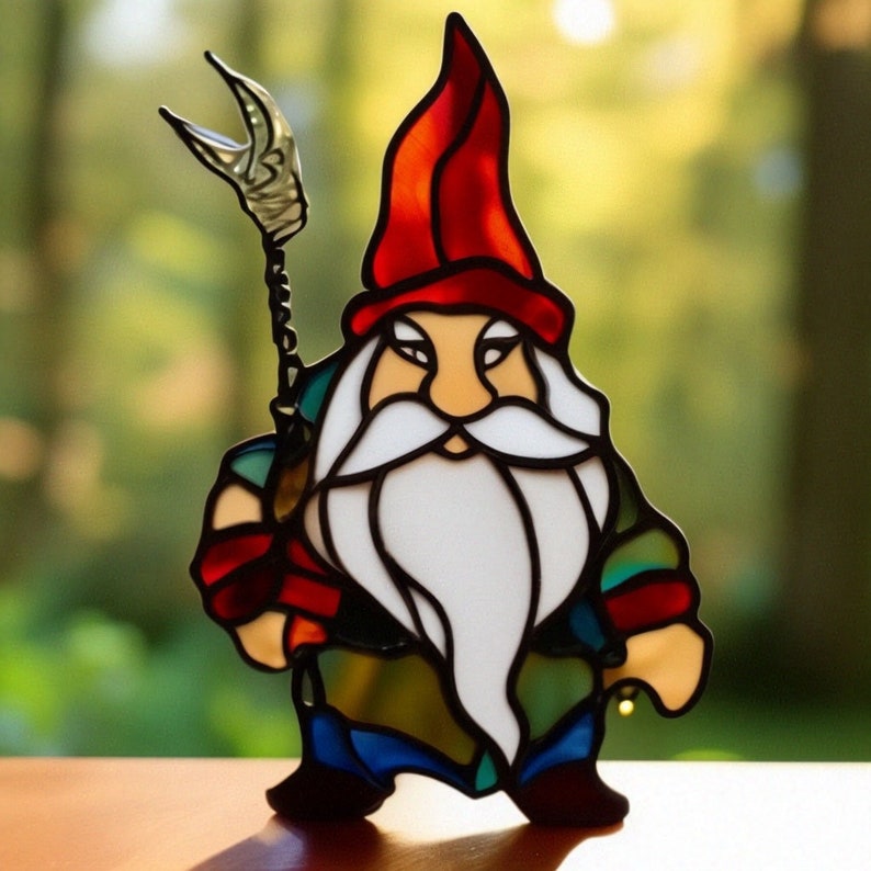 Hecho a mano vidrieras rojas gnomo suncatcher Glass Gnomer Abstract Stained Glass Gnome Suncatcher ventana colgante decoración del hogar lindo arte enano - Etsy Chile