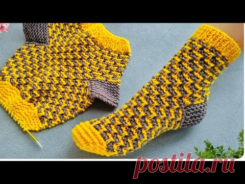 👌 ШЕДЕВР!!!💥ЛЮБОЙ СМОЖЕТ СВЯЗАТЬ!!!💥Вязаные носочки на двух спицах👌