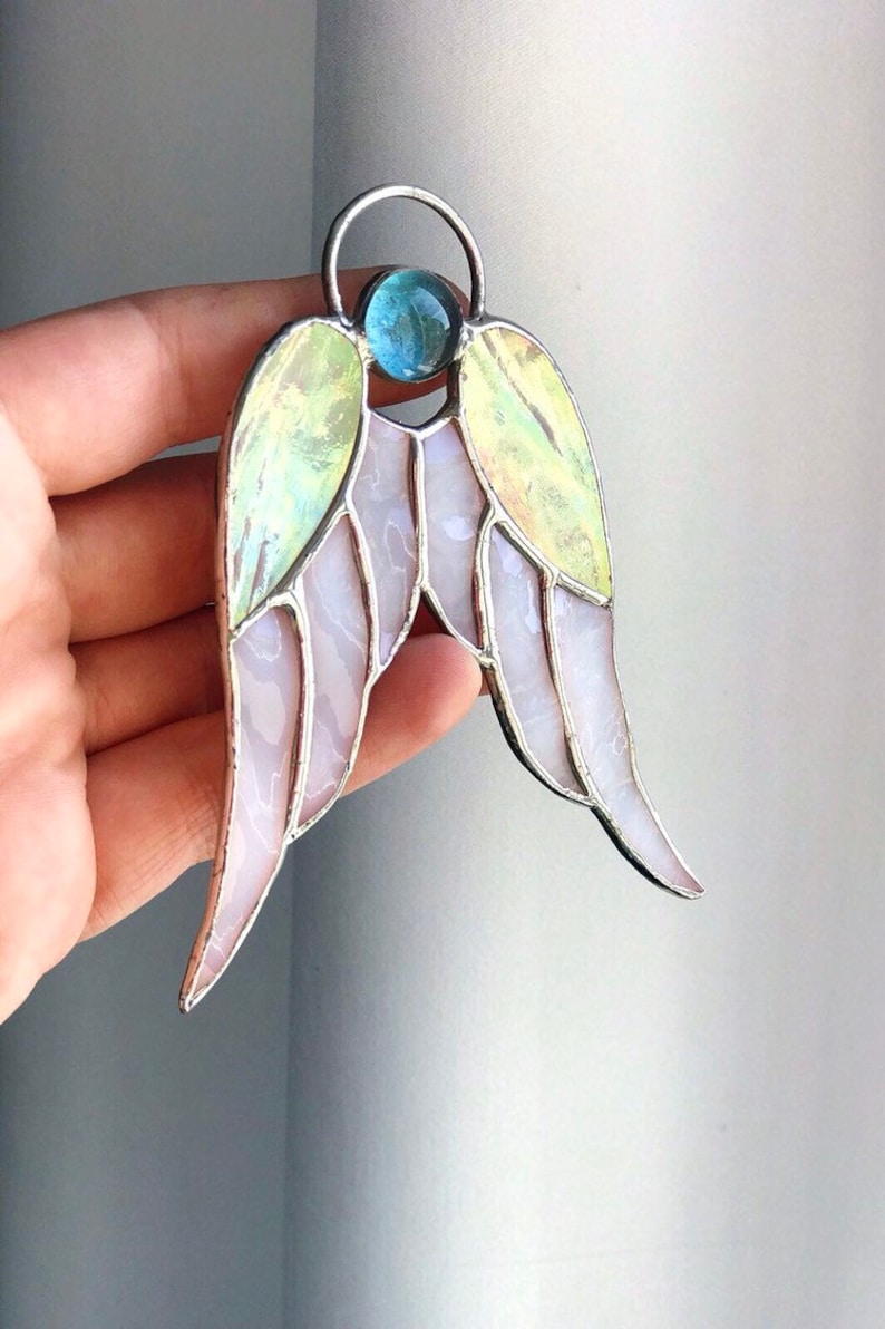 Alas de ángel decoración navideña de vidriera colgando regalo del Día de la Madre - Etsy Chile