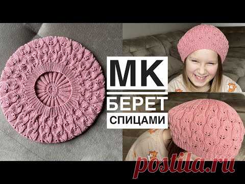 Мастер-класс простой берет спицами на весну с ажурным узором листочки.