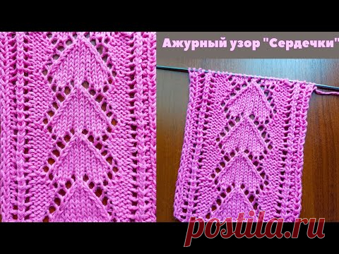 Ажурный узор "Сердечки" спицами + схема. Knitting an openwork pattern "Hearts" + scheme.