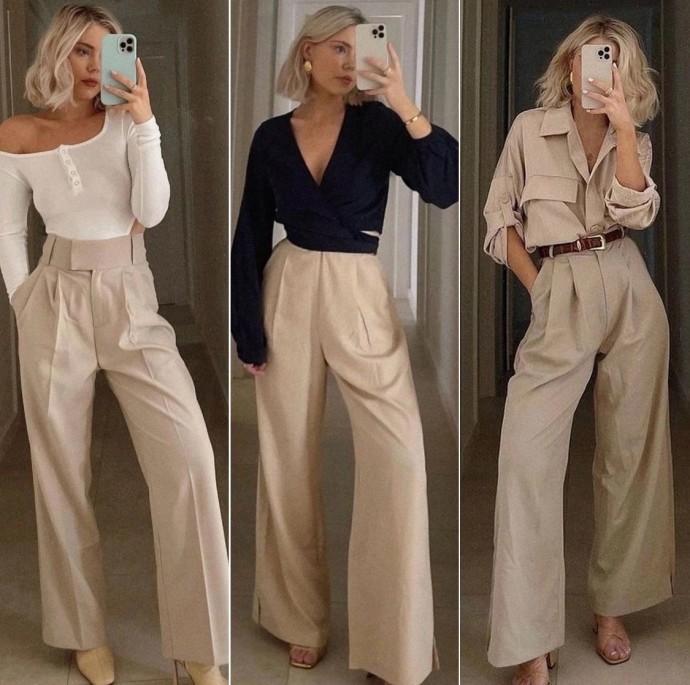 Широкие бежевые брючки