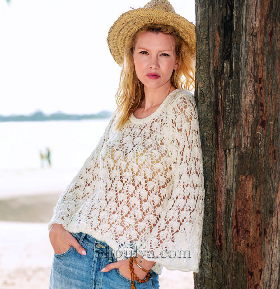 Белый ажурный пуловер с прямыми широкими рукавами — Shpulya.com - схемы с описанием для вязания спицами и крючком