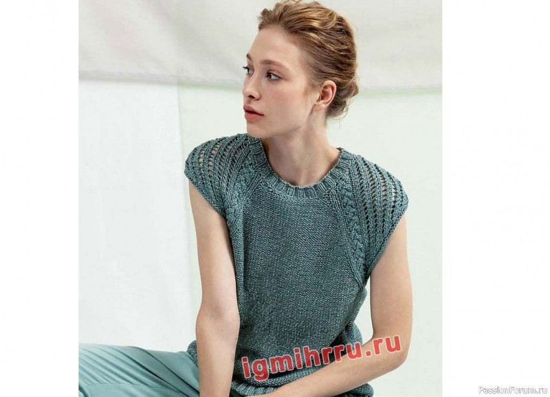 Топ с «косами» и ажурными дорожками. Описание | Вязание для женщин спицами. Схемы вязания спицами