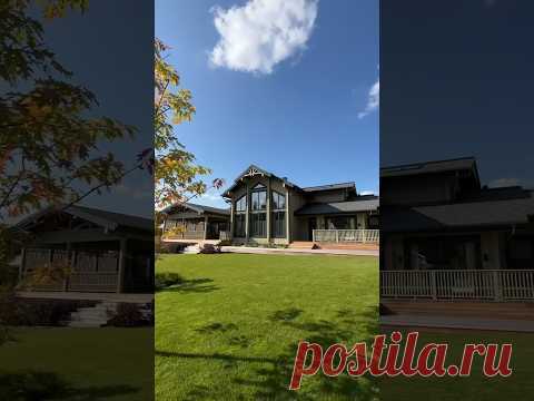 Деревянный дом с террасой, гаражом, нарядной входной группой и цветником под окнами от ПАЛЕКС