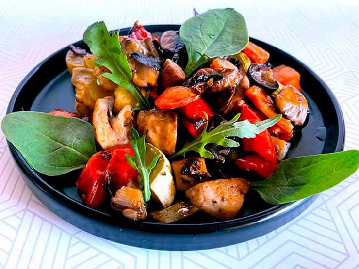 Запеченные овощи с грибами в духовке: рецепт на противне Овощи запеченные с грибами в духовке очень легкое, вкусное диетическое блюдо. Его приготовление не составит никакого труда.