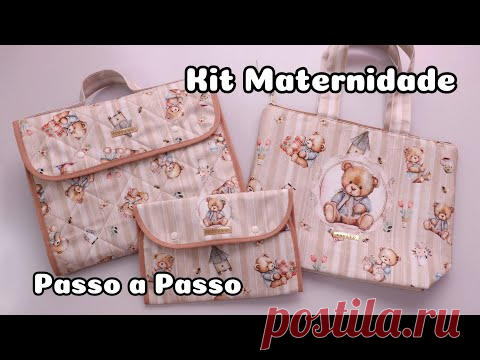 KIT MATERNIDADE - 3 Peças - Bolsa, Porta caderneta de vacina e Trocador - Passo a Passo