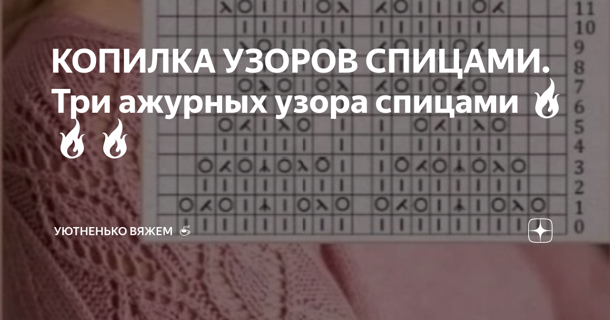 КОПИЛКА УЗОРОВ СПИЦАМИ. Три ажурных узора спицами 🔥🔥🔥 Статья автора «Мотки Клубки с Еленой 🧵🧶☕» в Дзене ✍: Три ажурных узора со схемами Напишите номер узора который вам больше всего понравился ✍ Узоры я пронумеровала 😉 Очень интересно ваше мнение 😍