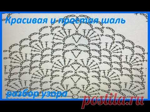 Очень простая ШАЛЬ по схеме , разбор узора , вязание КРЮЧКОМ, crochet shawl , ( шаль №443)