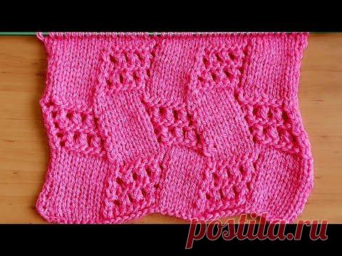 "Ажурная шахматка " Узор спицами для туники, жилета,кардигана, платья.