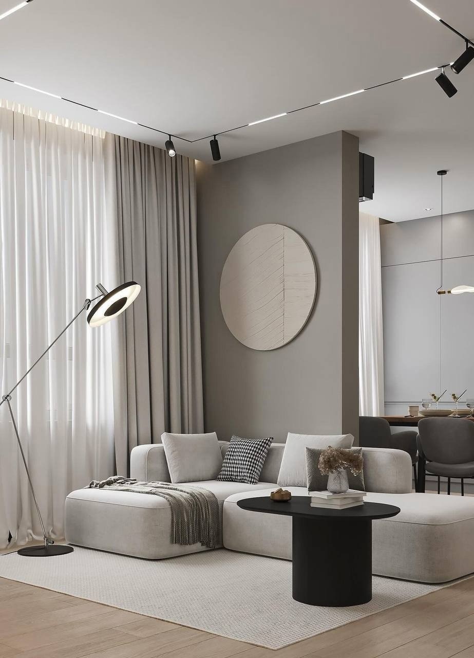 Серый цвет практичен: не выгорает и загрязнения на нем малозаметны; доминирование серого цвета в гостиной способствует глубокой релаксации.