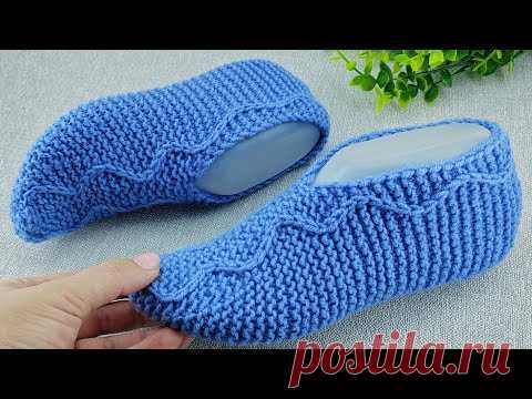 вяжем тапочки спицами для начинающих