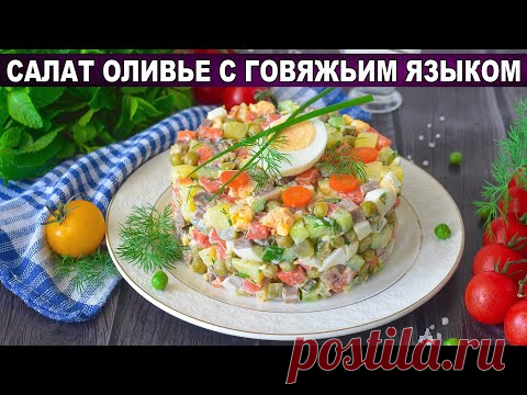 КАК ПРИГОТОВИТЬ САЛАТ ОЛИВЬЕ С ГОВЯЖЬИМ ЯЗЫКОМ? Вкусный, с горошком и солеными огурцами, на праздник