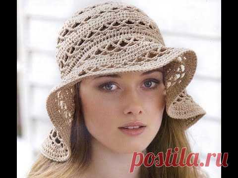 Вязаная летняя панамка (шапочка) крючком. Knitted hat tutorial.