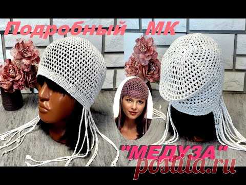 Удивительная летняя шапочка "Медуза" крючком. Бесплатный МК.