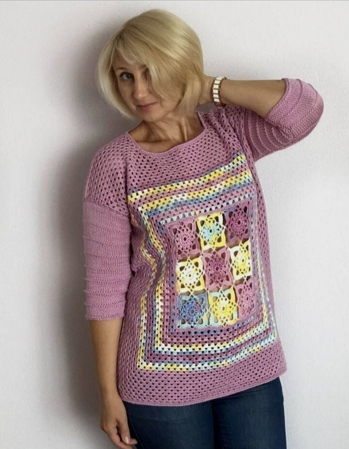 Ненавязчивый бабушкин квадрат. Как использовать остатки пряжи и не выглядеть смешно.Большая подборка вязаных идей. | Вяжем вместе с Людмилой | Дзен