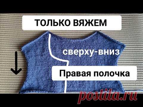 ч.3 Вяжем Сверху-Вниз "Правая полочка" (углубление по горловине + скосы плеча укороченными рядами)