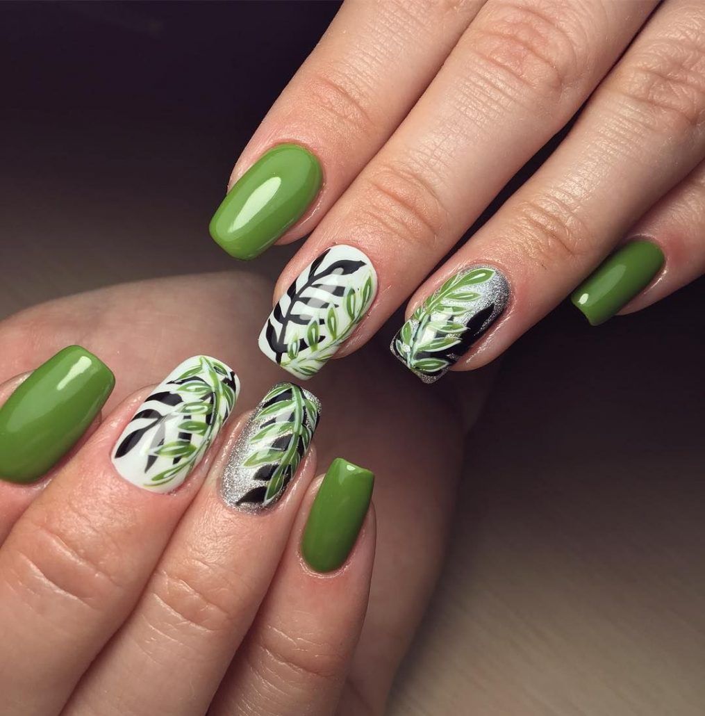 Зеленый маникюр с блестками: дизайн длинных и коротких ногтей зеленого и темно-зеленого цвета