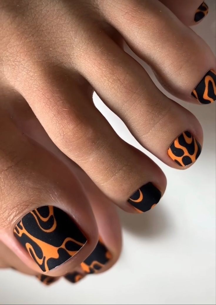 Оранжевый цвет способствует пробуждению фантазии, что влечет за собой бесчисленное количество интересных дизайнерских идей в нейл-арте. Стоит рассмотреть комбинации с контрастными цветами – черным, темно-синим, темно-зеленым.
