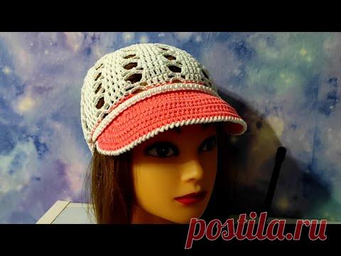 ЛЕТНЯЯ, АЖУРНАЯ КЕПКА КРЮЧКОМ. 2Часть. Видео для начинающих.