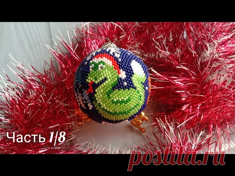 🐍МК Шарик "С Новым годом 2025"🐍на 6 см Мозаичное плетение Часть 1