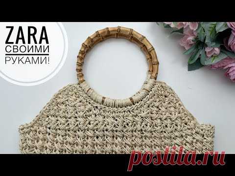 Модная трендовая сумка ZARA связать самой очень легко! Сумка крючком из крученой рафии.