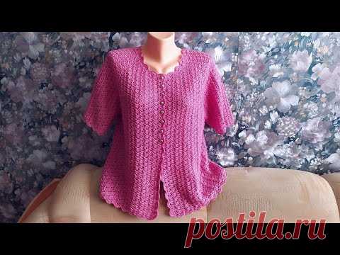 Жакет «Цветочная поляна» крючком.Реглан сверху.Подробный МК.