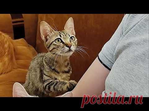 “Можешь ли тыОбними меня тоже?”Когда хозяин обнимал друга, спасенный котенок тоже хочет любви