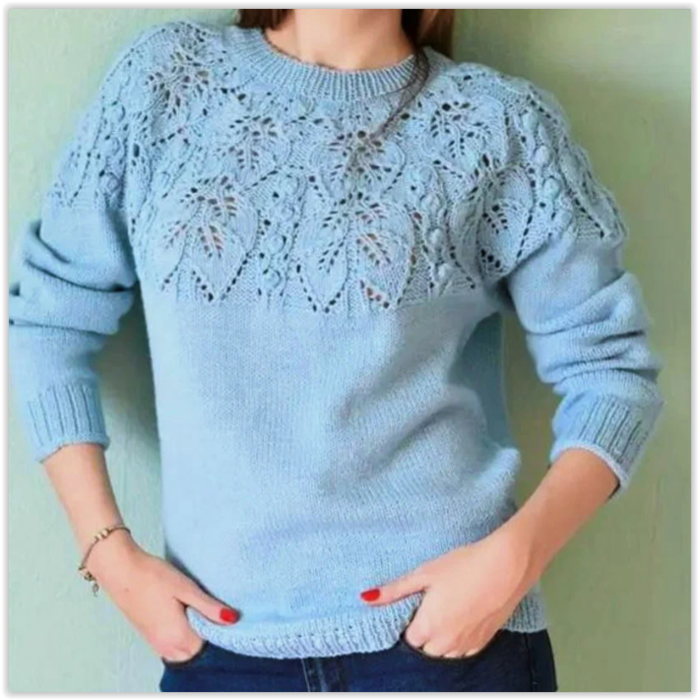 Вяжем шикарный джемпер с ажурной лиственной кокеткой!