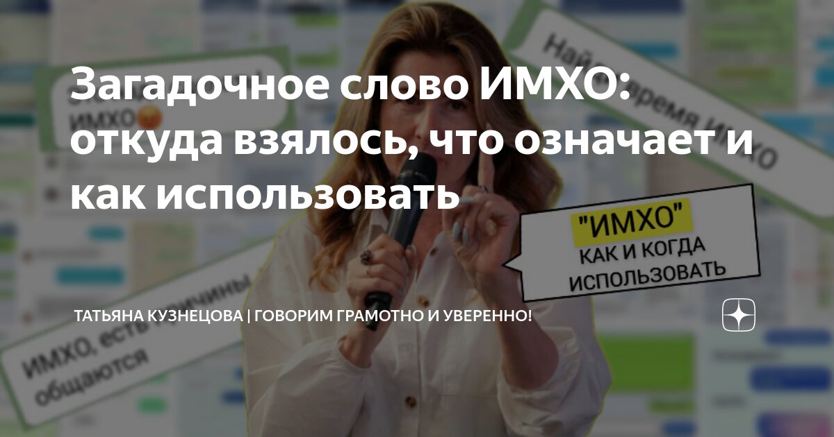 Загадочное слово ИМХО: откуда взялось, что означает и как использовать Статья автора «Татьяна Кузнецова | Говорим грамотно и уверенно!» в Дзене ✍: Нет - нет, да и попадутся мне в каком-нибудь письме или в чате эти четыре буквы.