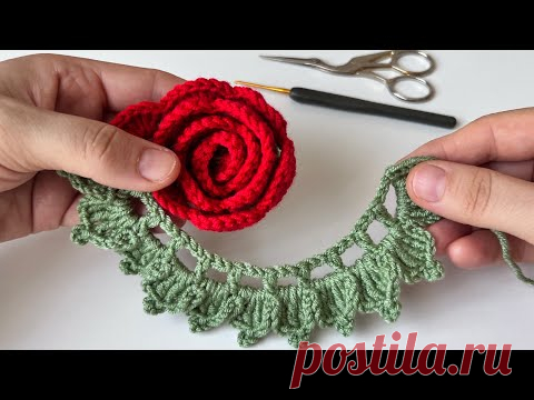 Вау!!!! ОЧЕНЬ СЛАДКО 🌹 Легкий узор розы крючком для начинающих 🌺 Изготовление РОЗЫ КРЮЧКОМ