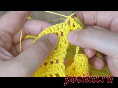 Азиатский росток крючком. Незаметный переход при вязании по кругу.