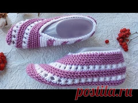 Домашние вязаные следки. Простая и очень красивая модель следков.