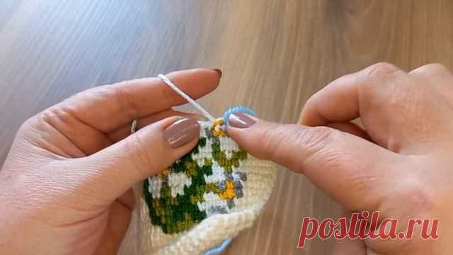 Тапочки тунисским вязанием 🌼+спицы💚 акрил 100гр 240/250м крючок 2.5 спицы номер 3+2.5
