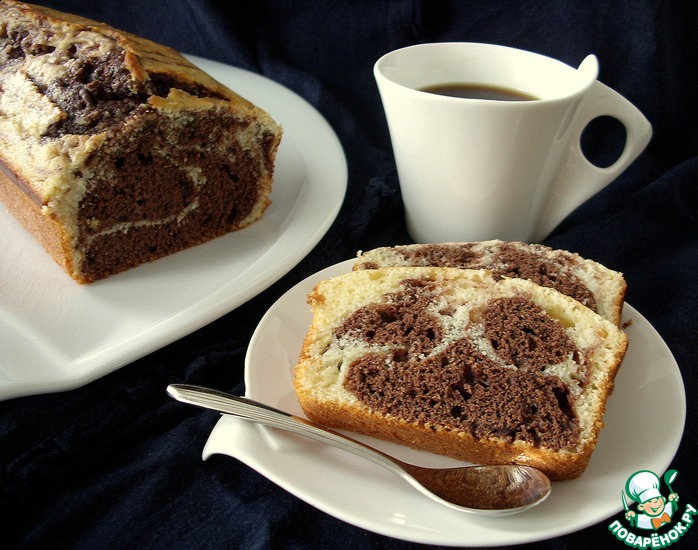- Снять цедру с одного лимона, не задевая белую часть, и мелко ее нарезать. Выдавить сок с этого лимона. В кастрюле, подходящей для размещения на водяной бане, смешать одно яйцо, сахарную пудру и сок. Варить на водяной бане 5-10 минут до загустения смеси, следите, чтобы кастрюля не касалась воды. Лимонную смесь процедить через мелкое сито, для получения гладкости и однородности. Добавить 12 гр сливочного масла комнатной температуры, цедру и мешать до полного растворения масла. Курд готов!:) 3 яйца взбить с сахаром до белезны и растворения сахара. Смешать муку с разрыхлителем теста, просеять в яичную смесь, добавить растопленное, но не горячее, сливочное масло (50 гр), йогурт. Смешать все до получения однородного теста. Тесто разделить на две части, в первую добавить лимонный курд и сок половины лимона. Смешать. Во вторую добавить какао и растопленный шоколад (но не горячий!). Смешать. Форму смазать сливочным маслом. Выложить тесто слоями, начиная и заканчивая лимонным, можно провести зубочисткой для создания узоров. Выпекать в заранее разогретой до 180 гр духовке 35-45 минут. Проверить готовность лучиной (она должна остаться сухой).