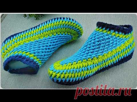 👌ЯРКИЕ ТАПОЧКИ - СЛЕДКИ СПИЦАМИ!!!👍 МК для начинающих
