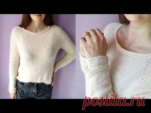 Базовый джемпер из пуха норки реглан сверху МК по вязанию спицами