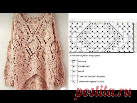 Красивый ажурный узор спицами для джемпера, кардигана, жилета!