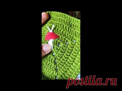 Вышивка мухомор на вязаном полотне/ Вязание крючком/ Вязание из мотивов 2 августа 2024 г.