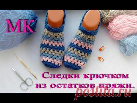 Следки крючком из остатков пряжи МК, подробный МК. Crochet Simple Slippers.