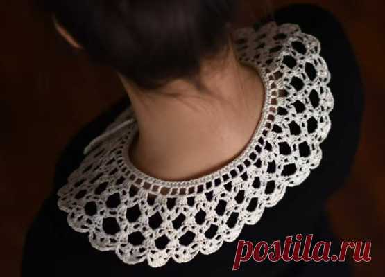 Вязание крючком. Простой ажурный воротничок для девочки, бохо стиль. Простой ажурный воротничок для девочки, бохо стиль. Справится даже начинающая вязальщица.