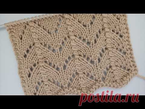 Красивый и несложный ажурный узор спицами поворотными и круговыми рядами.