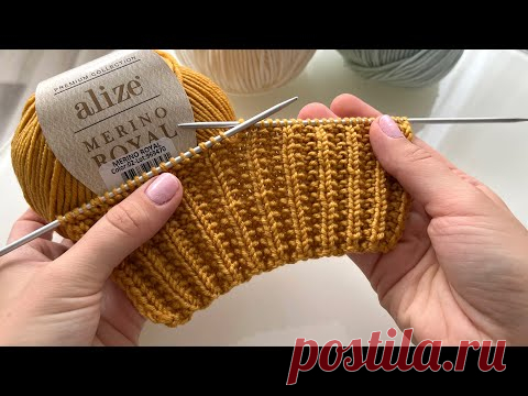Супер классная двусторонняя резинка спицами для шапок, кардиганов, свитеров. Очень простой узор!