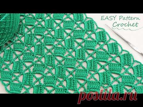 Всего 1 ряд!!! УЗОР крючком "Квадратики" ВЯЗАНИЕ для начинающих 💚 EASY Pattern Crochet for beginners