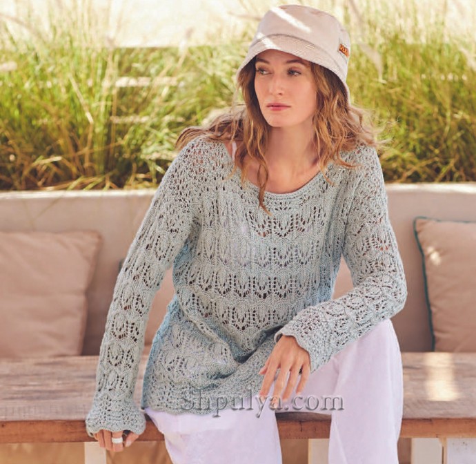 Летний вязаный пуловер с сочетанием ажурных мотивов