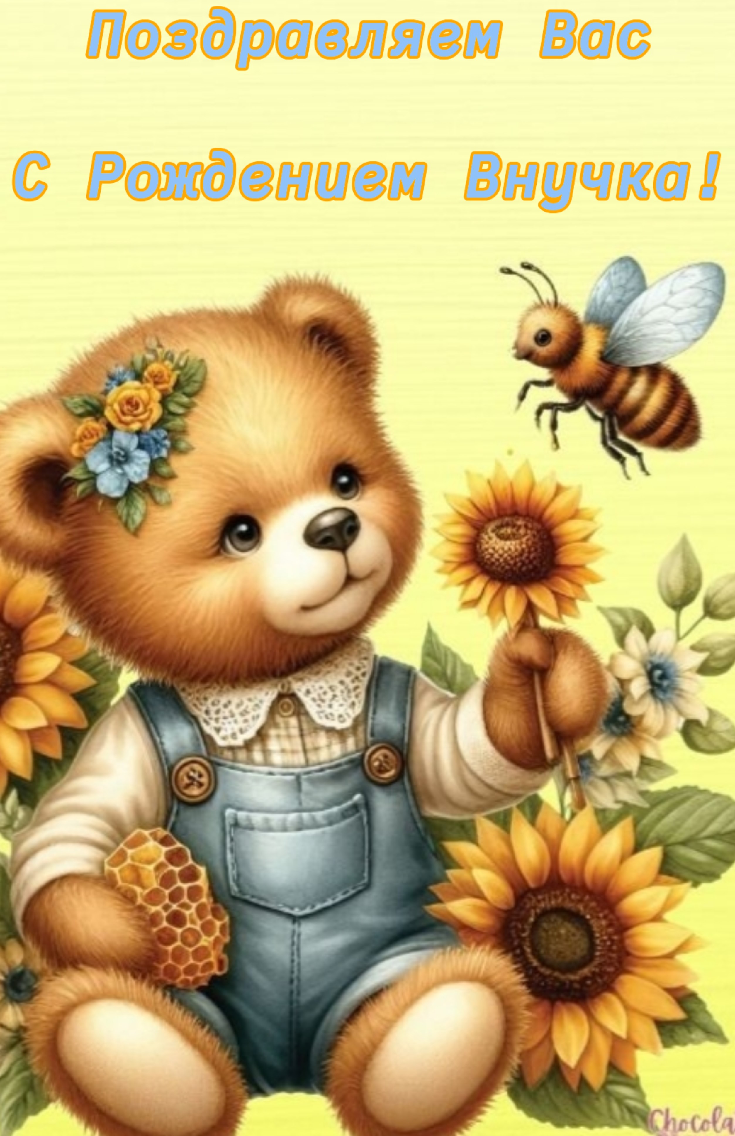 Мы сегодня поздравляем бабку с дедом дружно. Вам теперь для счастья в жизни ничего не нужно. Ведь у вас киндер-сюрприз в доме появился! Долгожданный и желанный внук у вас родился!