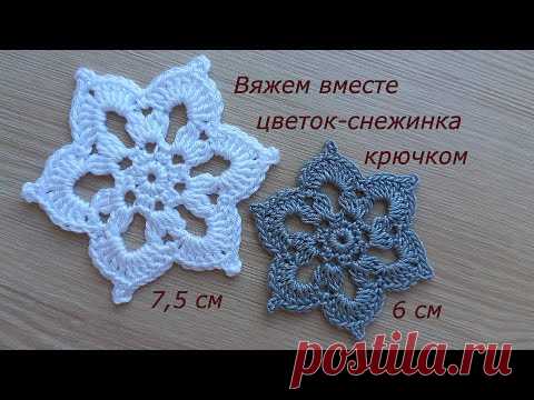 Аппликация цветок крючком снежинка Цветы крючком Вязание крючком мотив Easy crochet flowers tutorial