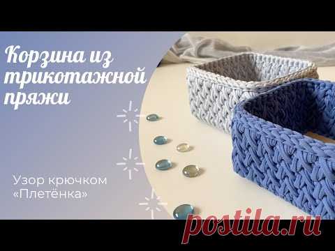 Корзина из трикотажной пряжи с деревянным дном / Узор крючком "Плетёнка" / Crochet basket
