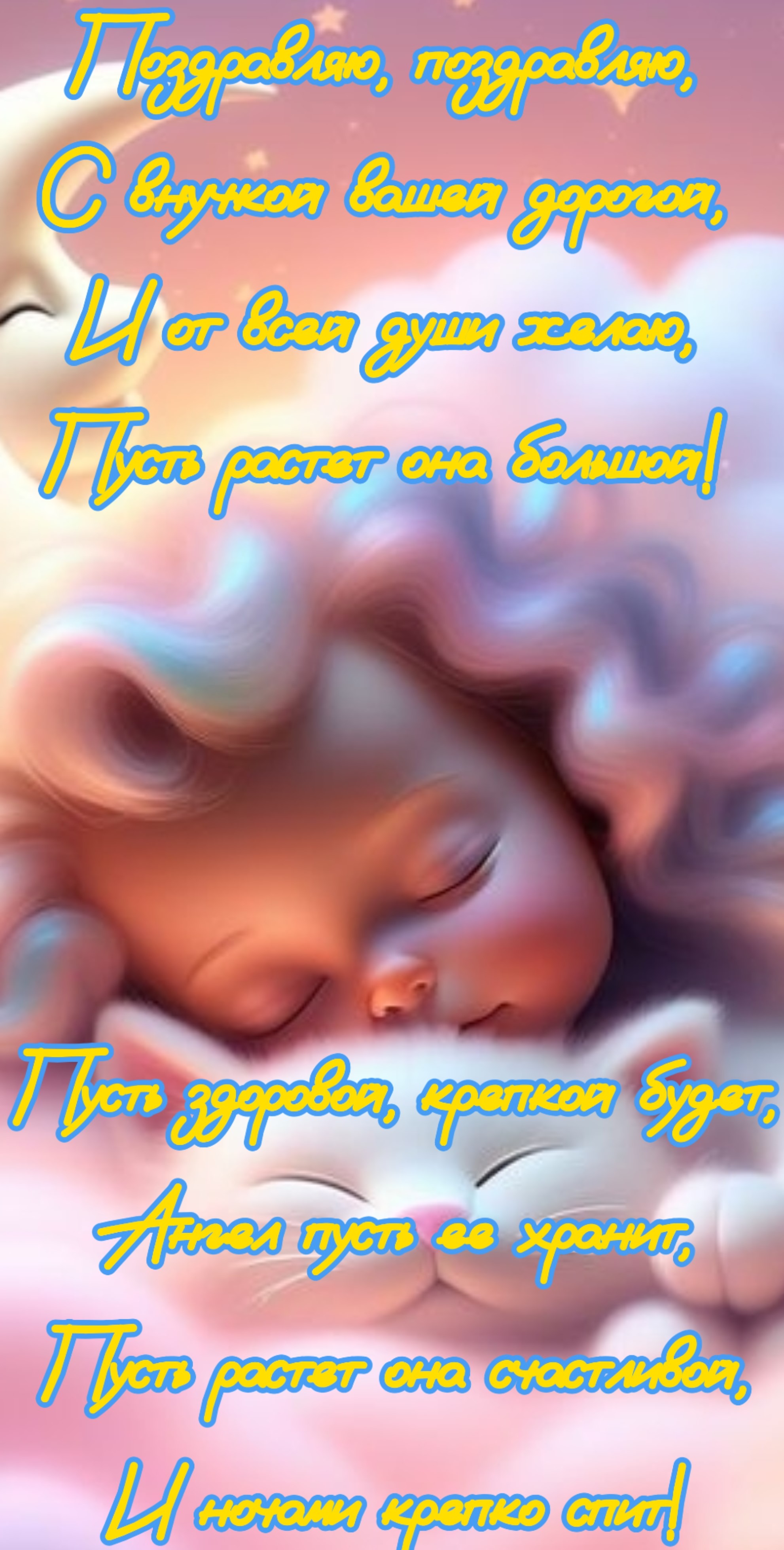 Сегодня ваша внучка родилась,С чем вас хочу я от души поздравить!Желаю, чтоб ее жизнь удалась,Пусть в сердце ее только счастье правит!