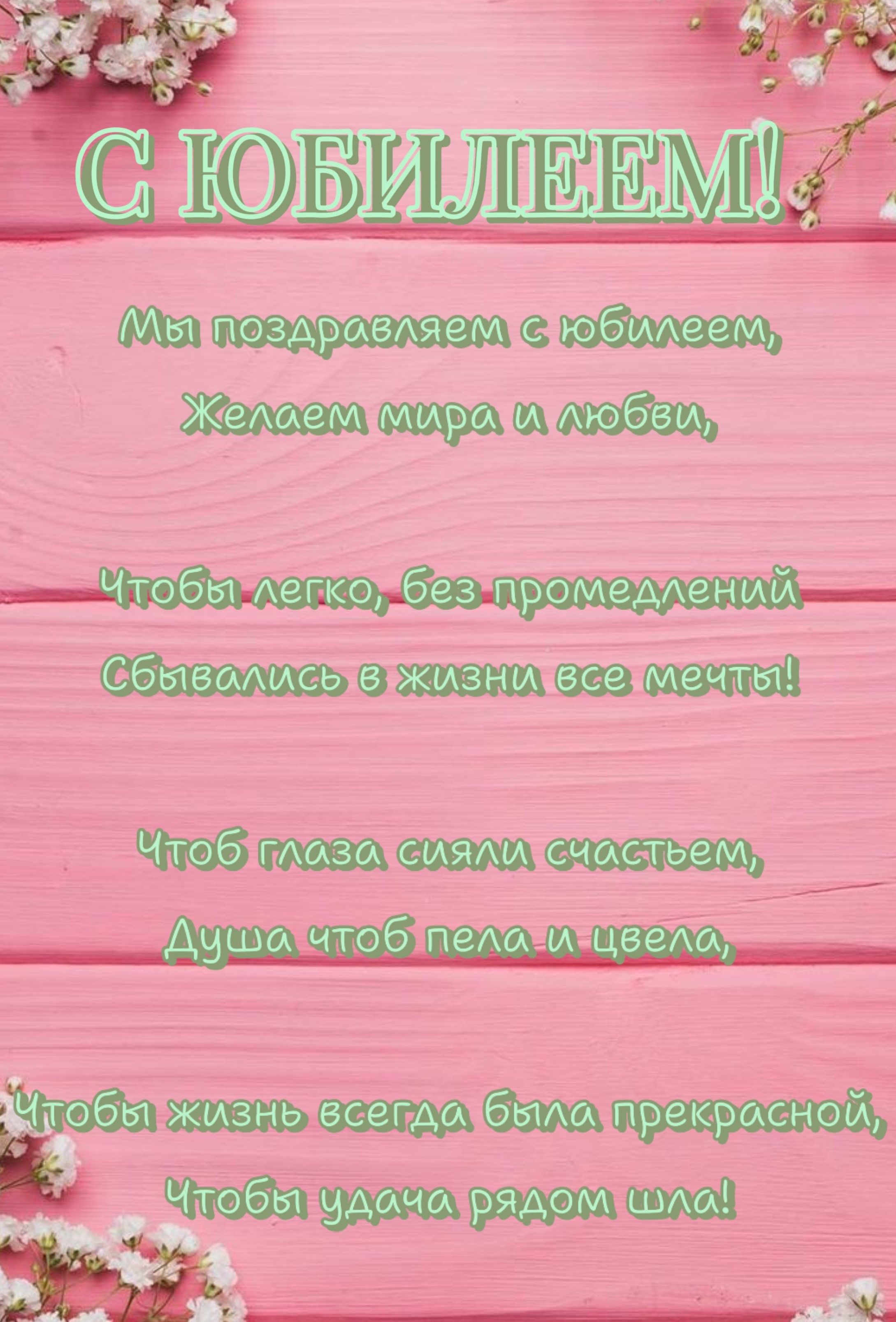 С юбилеем поздравляю! И сердцу твоему желаю Тепла, любви и доброты. Пусть сбудутся твои мечты.